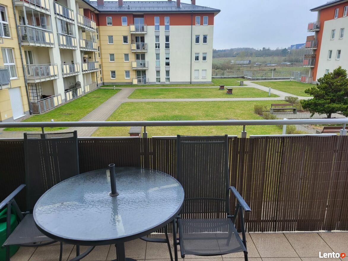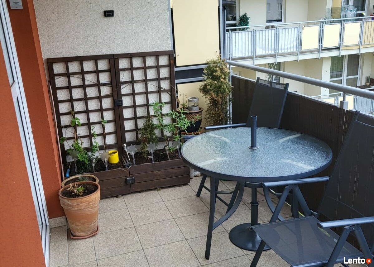 Balkon 8,10 m2 z widokiem na zamykane spokojne, bezpieczne dla dzieci patio